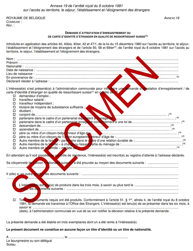 Wizyta odbywa się wyłącznie po wcześniejszym umówieniu. Na miejscu składasz wniosek o tzw. zaświadczenie rejestracji – Annexe 19 (po francusku) lub Bijlage 19 (po niderlandzku). Koszt procedury to ok. 30 €.